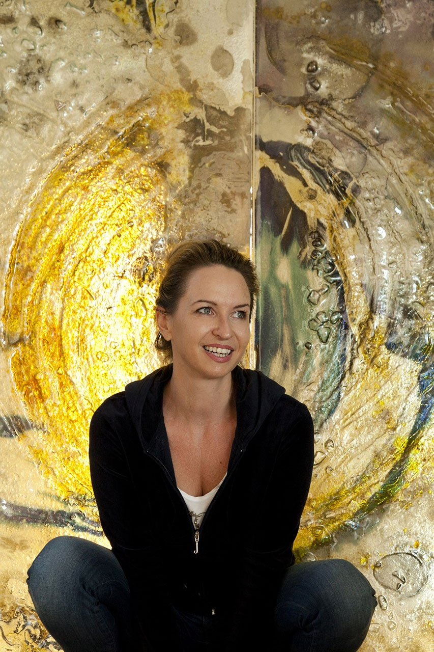 Napĺňa ma maľba s drahými kovmi, zlato a platina v jemnej súhre s bielou, vodovo tyrkysovou a vznešenou fialovou. To som ja, sklo je moja duša.